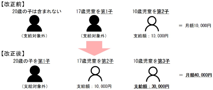 (例) 20歳、17歳、10歳の3人の子を養育している場合