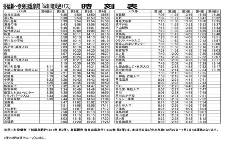 ※奈良田線の運行にあわせ、1日4往復の運行計画です(令和2年7月20日より時刻改正)